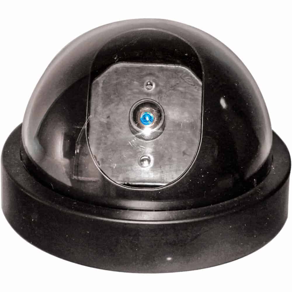 The Dome Dummy Camera with flashing LED Features a motion detection LED flashing light. Includes screws and screw mounts.